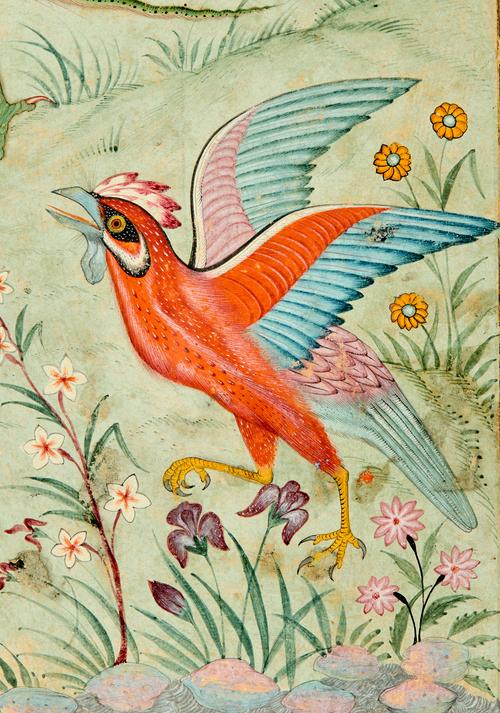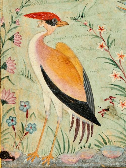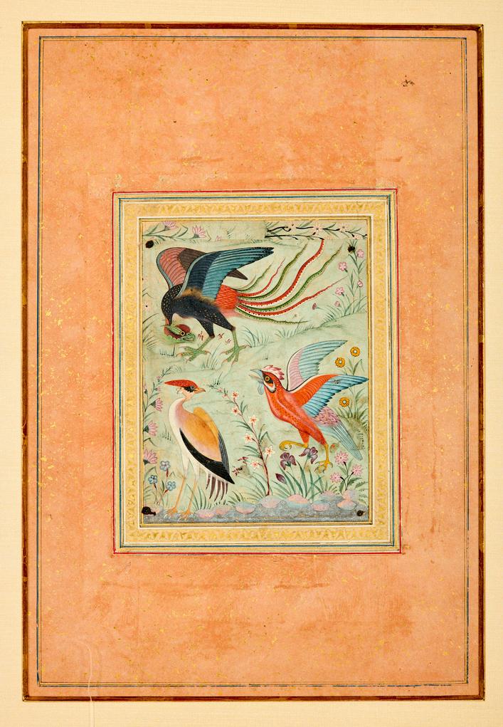 Attributed to the Deccan master Isma’il, this extraordinary painting reflects a time when Indian artists absorbed Persian, Mughal, and local influences to create fantastical imagery The birds, although imagined, are rendered with anatomical precision and delicate brushwork, embodying a blend of scientific curiosity and spiritual symbolism Works like this were often created for royal courts fascinated by the wonders of the natural world and the mystical possibilities beyond it It is a rare testament to Deccan art’s whimsical yet exacting aesthetic and is a vivid document of Indo-Persian artistic synthesis