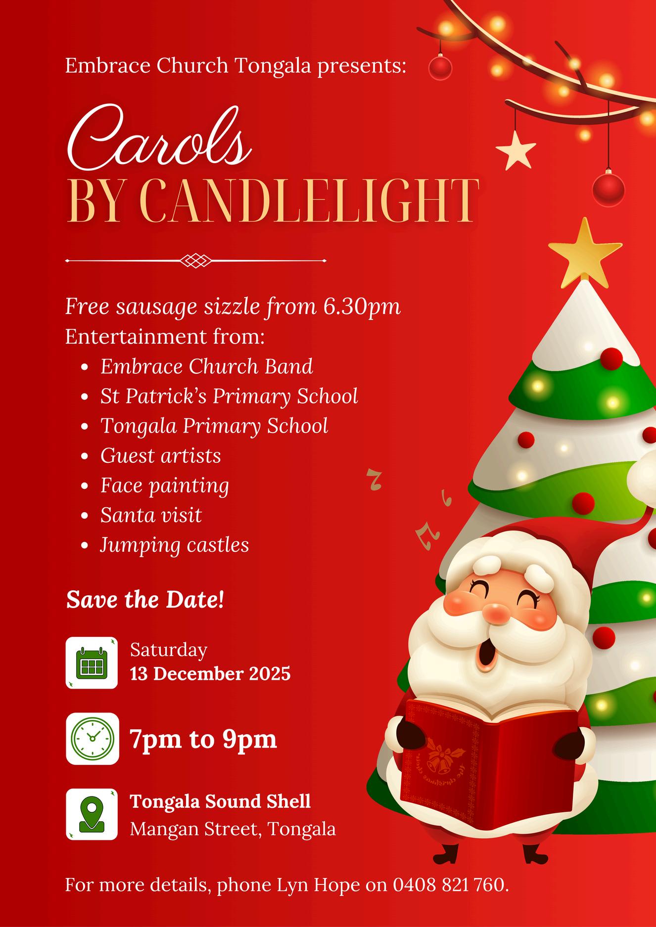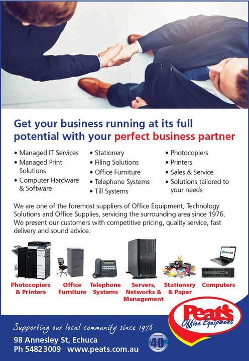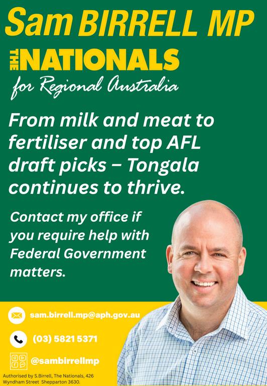 We’realsogratefulfor supportfromourraffle sponsors Tarragon Lodge,MurrayGumsEstate, RichRiverGolfClub,Plaza TheatreKyabram,andThe PortIceCreamery and forfooddonationsand helpfromGreenhams, Fitzgerald’sFarmFresh Meats,TongalaBakery, TongalaIGA,TongalaFire Brigade,EverydaySupplies, SPCArdmona,McColl’s Transport,KyHireService, Peat’sOfficeEquipment, Cadell,andallourfamilies whobakedand contributedtothecake stall