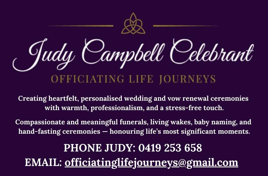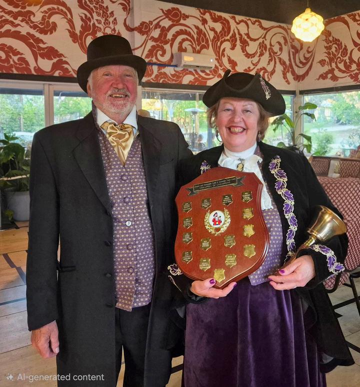 Bythesecondround,the windhadeasedslightlybut composurewasstilla challenge andnearby HighlandGames competitorsfaredno better!Thatevening,the TuggeranongRotaryClub hostedtheGuild ChampionshipAward Dinner JudyandPeterpresented greetingstoPresidentDeb Hawkeronbehalfof KyabramRotaryClub, alongwiththebook “CelebratingWomen”by membersandfriendsof theKyabramTownHall Writers’Group JudyandPeterarethrilled toannouncethatJudywas crownedChampionof Championsforthe2025 AncientandHonourable GuildofTownCriers NationalChampionship. Shewasalsorunner-upfor BestContentofCry,and togetherJudyandPeter werejudgedBestDressed TownCrierandAttendant Aheartfeltthankyouto HeatherKidgellofTongala forherexceptionalskillin creatingtheensembles JudyandPeterproudly wearwhenrepresenting ourshire