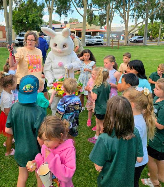 Tongalawasburstingwith EastercheeronApril3,as nearly100excitedchildren joinedinthemuchanticipatedEasterEggHunt! Laughterandhappychatter filledtheairasfamilies cametogetherforan afternoonoffunand celebration. TheEasterBunnymadea surpriseappearance, delightingchildren(anda fewgrown-ups!)who snappedphotoswiththe much-lovedguest Withbasketsinhand manydecoratedwith stickersandcolourful stamps kidsdashedoffin searchofhiddenchocolate treasures HostedbytheTongala