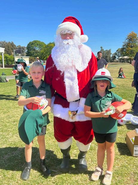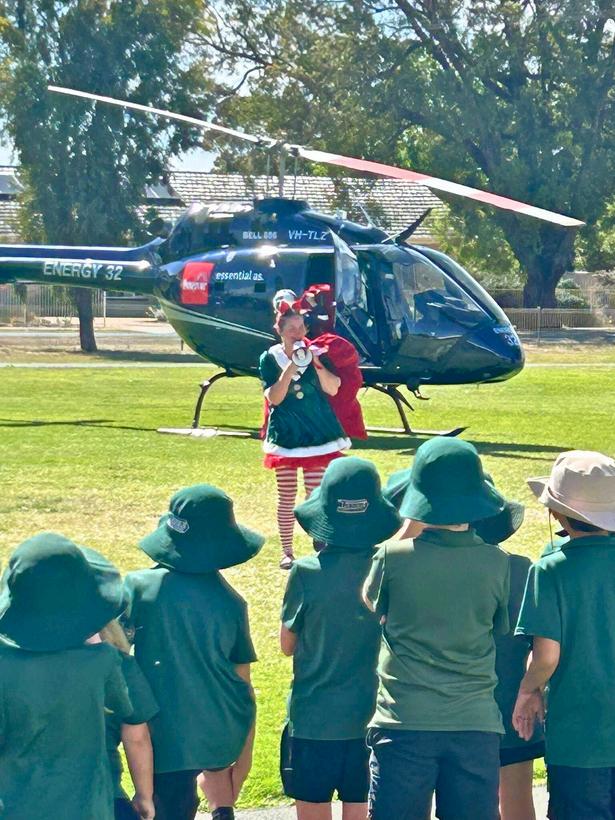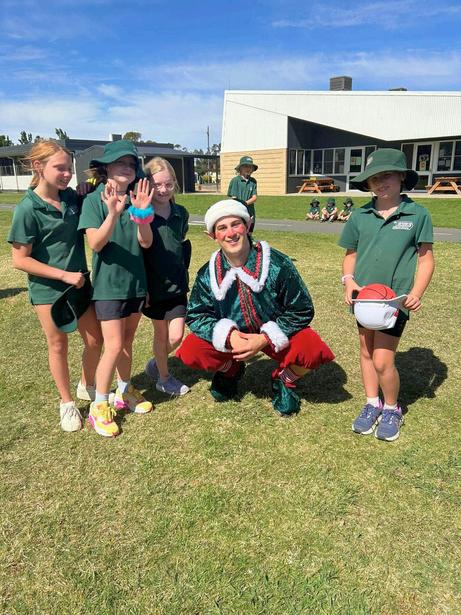 ExcitementfilledTongalaPrimarySchoolonDecember4 withasurprisevisitfromSanta,hiselvesandeventhe Grinch,whoarrivedinspectacularfashionbyhelicopter Afterplentyofcheering,acheekymomentsawtheGrinch brieflystealSanta’ssackbeforeanelfsavedtheday, allowingSantatohandoutbasketballs,hatsandlolliesto everyone.