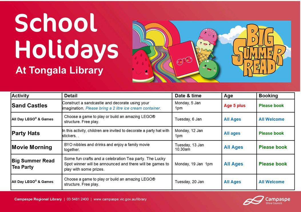 DearFamiliesofTongalaChildcareCentre, WewillbeclosedfromThursday18thof December2025, toThursday8thof January2026.Weapologiseforany inconveniencethismaycause. Ifyouhaveanyquestions,pleasedonot hesitatetocalloremail: TheCoordinator �� tcaccoordinator@tongala.vic.au �� (03)58591268 �� 94ManganStreet,Tongala3621 Thankyouforyoursupport