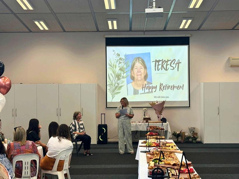 OnDecember5,StPat’s celebratedand farewelledmuch-loved staffmemberTeresa, marking25yearsof dedicatedservicetothe schoolcommunity Thesurpriseevent,kept secretuntilthelast moment,includedahigh teawithspecialguests,