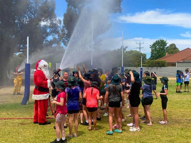 groundsintoahiveof colour,musicandlaughter. Studentsenjoyedaday packedwithactivities includingadance,BBQ lunch,footyclinicandphoto booth,alongwithcraft stations,tattoos,party gamesandhands-onfoodmakingactivities.The festivitieswerecappedoff withavisitfromSantaand theCFA,completewith sprinklesandan enthusiasticsoakingfrom thefiretruckthatensured themilestonewas celebratedinunforgettable style