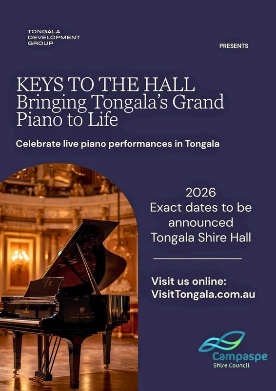 fronttoo TheTongala DevelopmentGrouphas beenawardeda CampaspeShireSPARKArts &CultureGranttodelivera newprojectin2026 Keys totheHall:Bringing Tongala’sGrandPianoto Life. Theprojectwillreintroduce thegrandpianoasa centrepieceoftheTongala Hallthroughaseriesof performancesfeaturing localandvisitingartists Eacheventwillshowcase thepianoinadifferentway, creatingavibrantspacefor livemusic,creativityand communityconnection Withopportunitiesforboth emergingandestablished performers,2026isshaping uptobeanexcitingyearfor theartsinTongala.