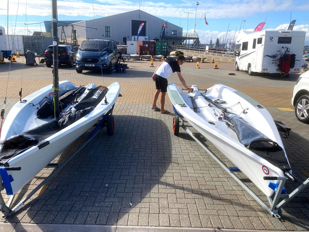 Unperturbed, in 2022 we travelled to Bristol Corinthian YC and Lymington Regatta, and in July 2022, we prepared our boat for the Worlds at Weymouth & Portland National Sailing Academychanging ropes, blocks and slot gasket, polishing and building our data - we did everything we could to make it ready, but little did we know what would lie in store for us.
