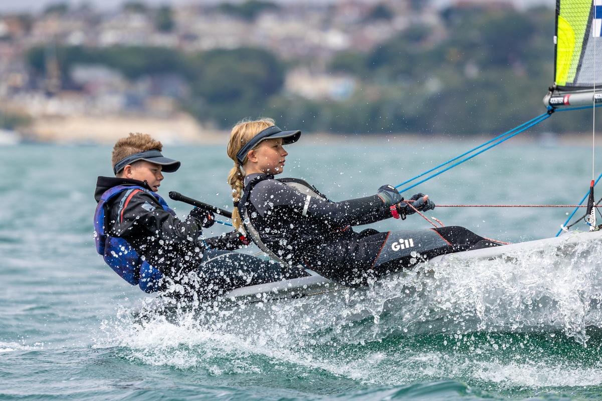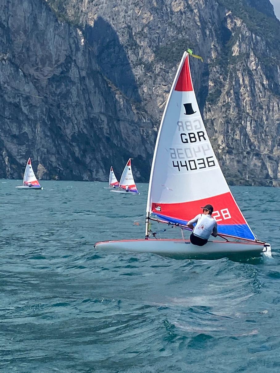 amongst these were at the Feva Worlds in Weymouth where Freddie Sunderland and Stella Nygard came second (Freddie had just come second in the ILCA 4 Nationals the previous week!), closely followed by Millie Irish and Robert Byne in 4th. Meanwhile, in Italy, Joe Rowe became Topper World Champion, winning the event on Lake Garda where there was a strong Draycote entry with 8 members competing. In total, Draycote Y&J sailors made over 30 entries to World Championship events this summer, and not only in the traditional youth classes. In Ireland, Katie Byne and Lia Horne came 17th and highest placed youth team in the Fireball Worlds in their first season in a Fireball, having moved on from a 420. As such they were the leading Draycote boat, beating 2 other home teams who have probably been sailing since before Katie and Lia were born!