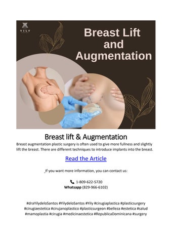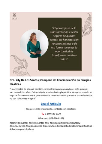 Md. Yily De Los Santos, recognized as the best plastic surgeon in the Dominican Republic, offers her training and skills to hundreds of patients with the best results.
