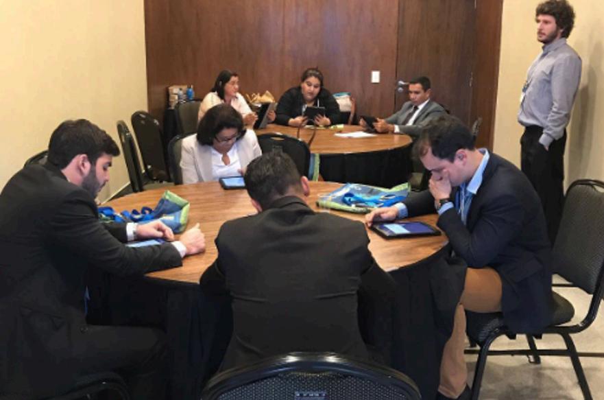 Charles Nelson, Nathan Fox, and Julie Staples-Watson initiate EI-3 Project agreements and protocols with leadership and judges of the São Paulo Judicial branch at the Palácio da Justiça.
