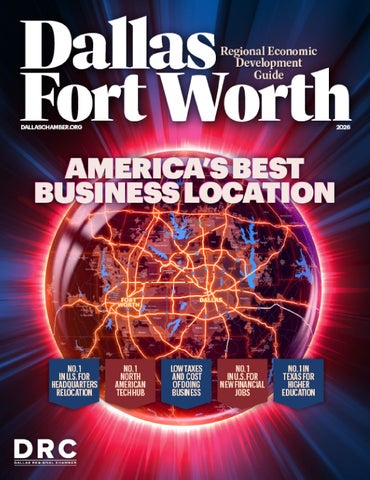 Take a deep dive into living and doing business in Dallas-Fort Worth. The DALLAS publications are insider guides to the region's innovation, real estate, industry, and more. Together with Dallas Innovates, they cover what's new and next. Published for the Dallas Regional Chamber by Dallas Next, they showcase the economics, developments, people, and companies that make the region a hub of innovation.