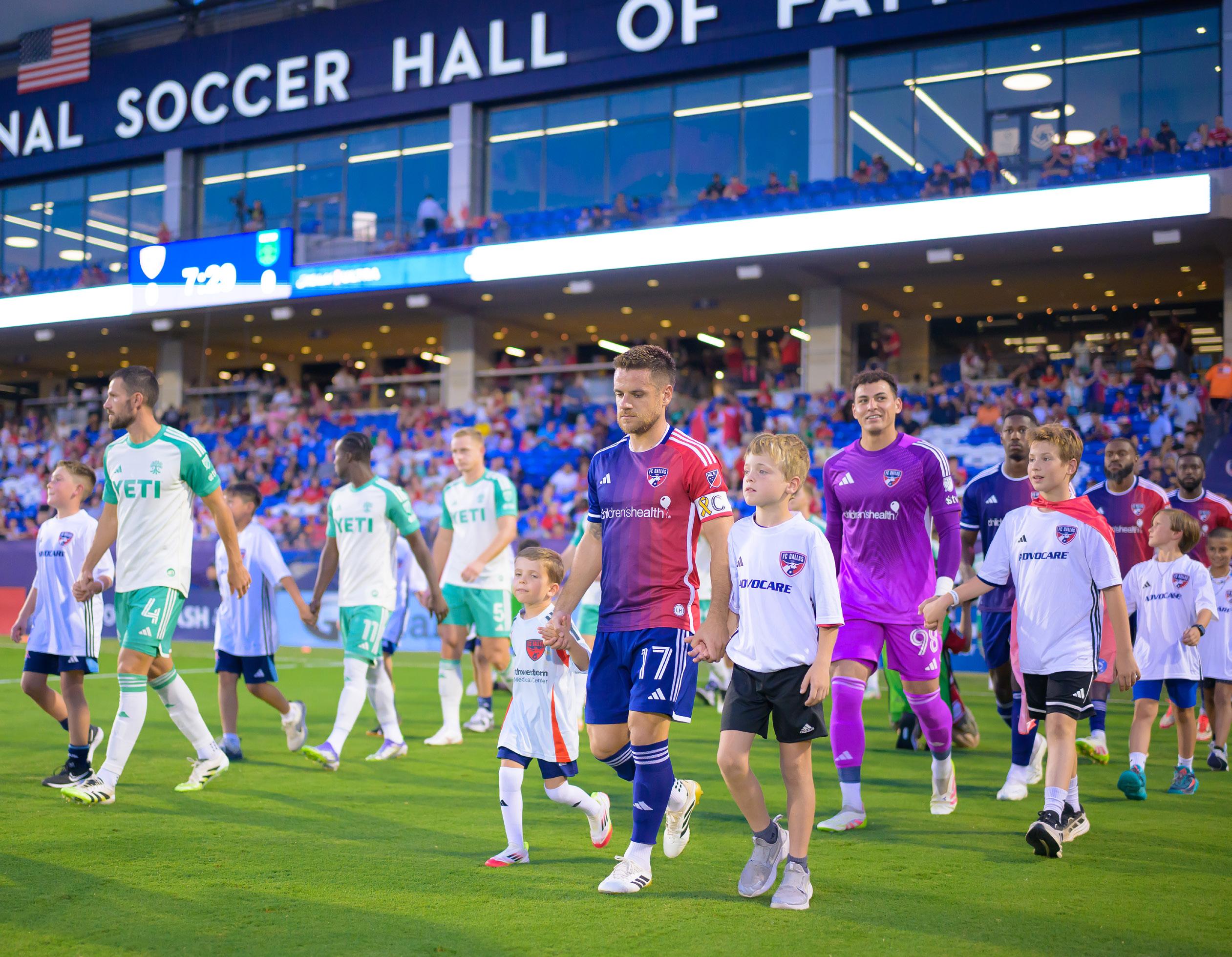 Top row: FC Dallas midfielder Ramiro Benetti, Dallas Mavericks CEO Rick Welts, and Dallas Trinity FC goalkeeper Rylee Foster. Bottom row: Dallas Stars left wing Jason “Robo” Robertson, PGA of America CEO Derek Sprague, and Dude Perfect CEO Andrew Yaffe