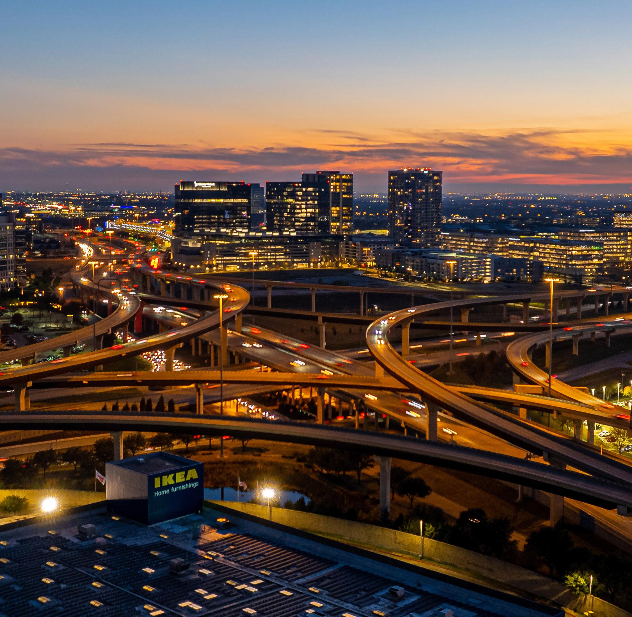 An aerial view of the intersection of Dallas North Tollway and Sam Rayburn Tollway in Collin County.