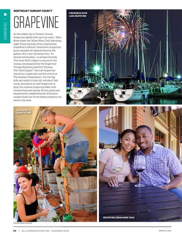 As the oldest city in Tarrant County, Grapevine gladly lives up to its name. Wine flows down the Urban Wine Trail, featuring eight Texas wineries. Every September, Grapefest in Historic Downtown Grapevine pours samples of regional wine by the gallons. But it isn’t all about vino. It’s heaven for families—or at least the kids. The Great Wolf Lodge is a mecca for the young, accompanied by the Grapevine Vintage Railroad pulled by Thomas The Tank Engine™, Sea Life Grapevine Aquarium, LegoLand, and the events at The Gaylord Texas Resort. For the big kids, get ready to boat, ski, windsurf, fish, camp, and picnic at Lake Grapevine or shop the massive Grapevine Mills mall. Centered around almost 30 city parks and playgrounds, neighborhoods of all price ranges boast one of the lowest property tax rates in the area.