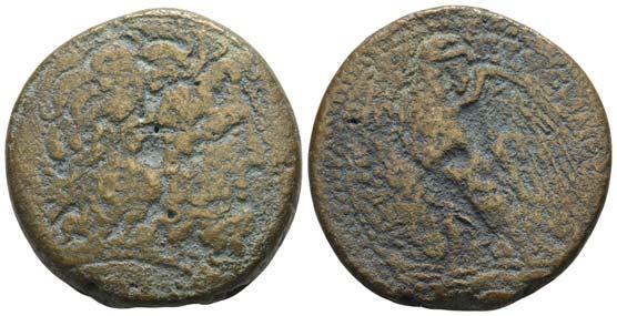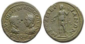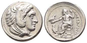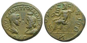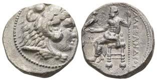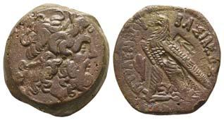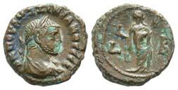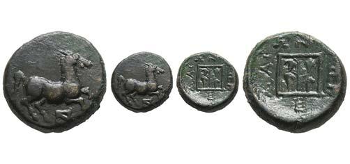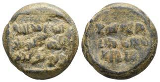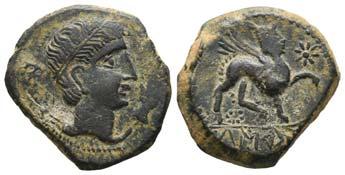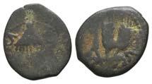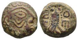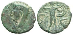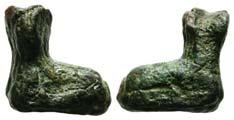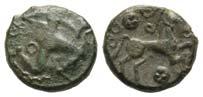 Boar to left, standing on exergual line / Lion to right with S-shaped tail, rings around. ABC 270; VA 154-5; BMC 2487; SCBC 176. 1.92gr, 15mm, 1h. Good Very Fine. Nice emerald patina. Very rare. £60 - 80