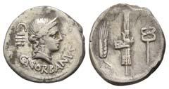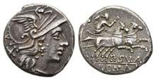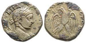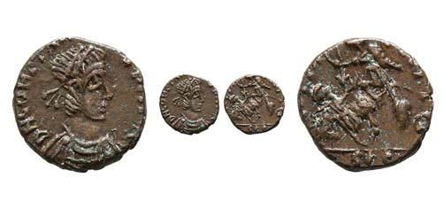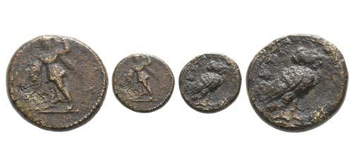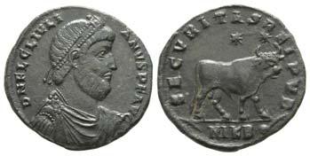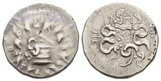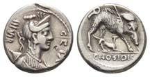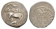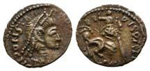 Degraded head of Apollo to left / Degraded bull butting to left on exergual line. ABC 147; VA 104-105; BMC 667. 2.70gr, 18mm, 10h. Good Very Fine. Rare. £30 - 40