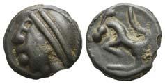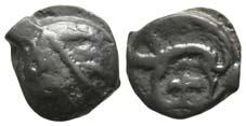 Head to right, hair composed of crescents / Horse to right, ringpellets around. ABC -; cf. Bean QsT16; VA -; SCBC -. 0.67gr, 12mm, 3h. Fine. Traces of silver.