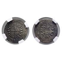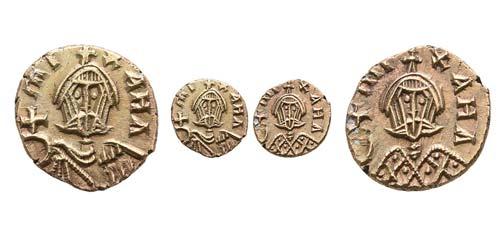 C • F in centre of two interlocking squares; all within beaded border / TI-NC (clockwise), boar running to right. ABC 1136; VA 383-1; BMC 981-82; SCBC 91. 0.29gr, 8mm, 12h. Good Very Fine. Sharp details. Very rare. £100 - 140