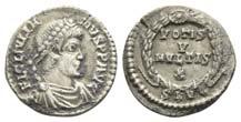 C MM IF , bare male head to right; all within beaded border / VER-I (anticlockwise), Sphinx seated to right, with wings spread; all within beaded border. ABC 1340, VA -; BMC 1587-89; SCBC 163. 0.23gr, 8mm, 5h. Near Extremely Fine. A miniature masterpiece. Exceedingly rare. Only twelve other recorded (when sold); no other examples on CoinArchives. £150 - 200