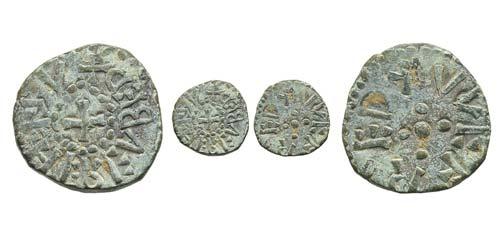Roman-style temple flanked by C-F (retrograde) / Bull butting to right, VER (retrograde) above, REX in exergue. VA 553-1; BMC 1538-41; ABC 1316; SCBC 152. 0.31gr, 8mm, 4h. Very Fine. Toned. Very rare. £80 - 100