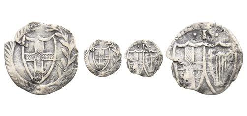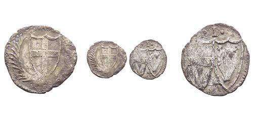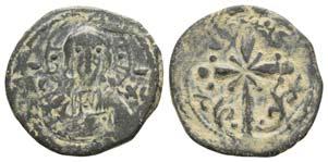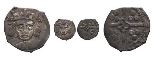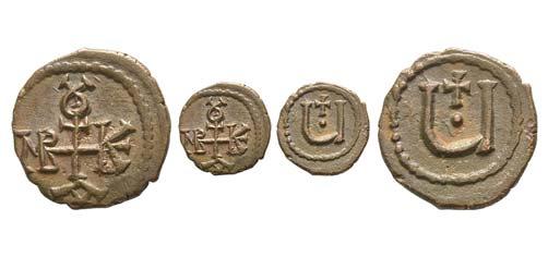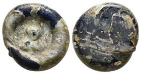Outline head to right around large central nipple / Crude outline bull around large central nipple. ABC 174; BMC 715-723; SCBC 64. 1.46gr, 16mm, 3h. Good Very Fine. ‘Metal flow’ channels attached each side. £40 - 60