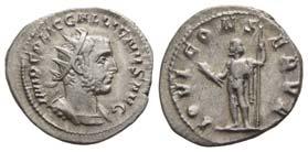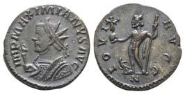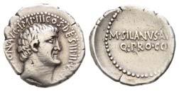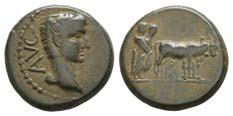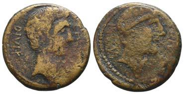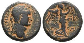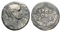Figure standing facing and holding curved lituus and grapes, COM to left field, MI F to right / Laureate bust of Tiberius to right, VERI behind head, CA before. VA 533-1; ABC 1250; SCBC 136. 1.30gr, 13mm, 10h. Very Fine. £80 - 100