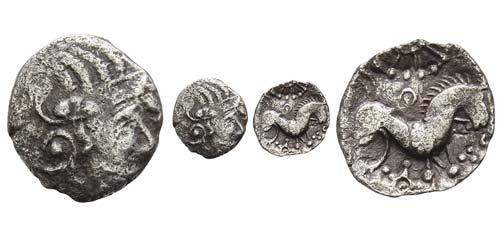 From Chris Rudd Auction: ‘It’s unusual to see a Druidic triskelion (three-legged symbol) in front of the horse. Unlisted by all major catalogues. None in the British Museum.’