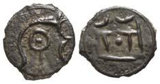Outline head to right around large central nipple / Crude outline bull around large central nipple. ABC 174; VA 137; BMC 723; SCBC 64. 1.07gr, 13mm. Good Very Fine. Very rare with ‘diagonal box’ bull.