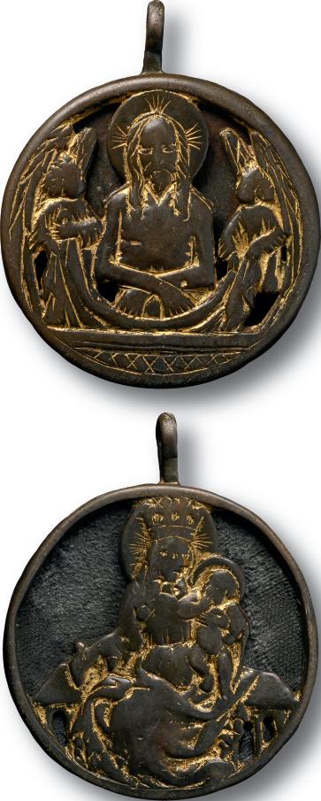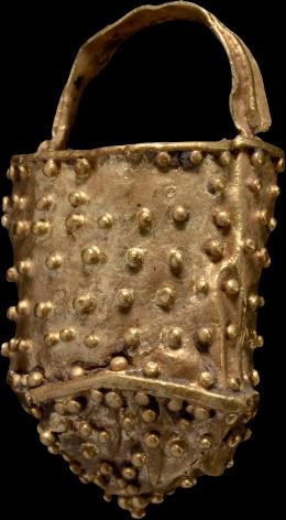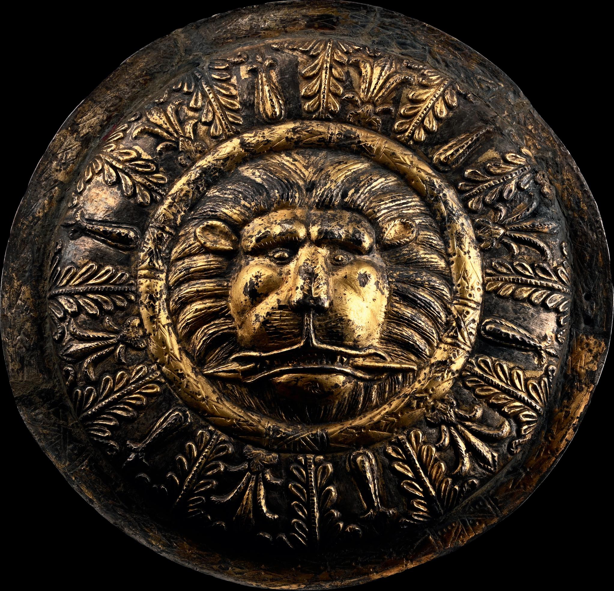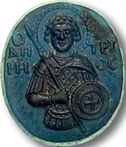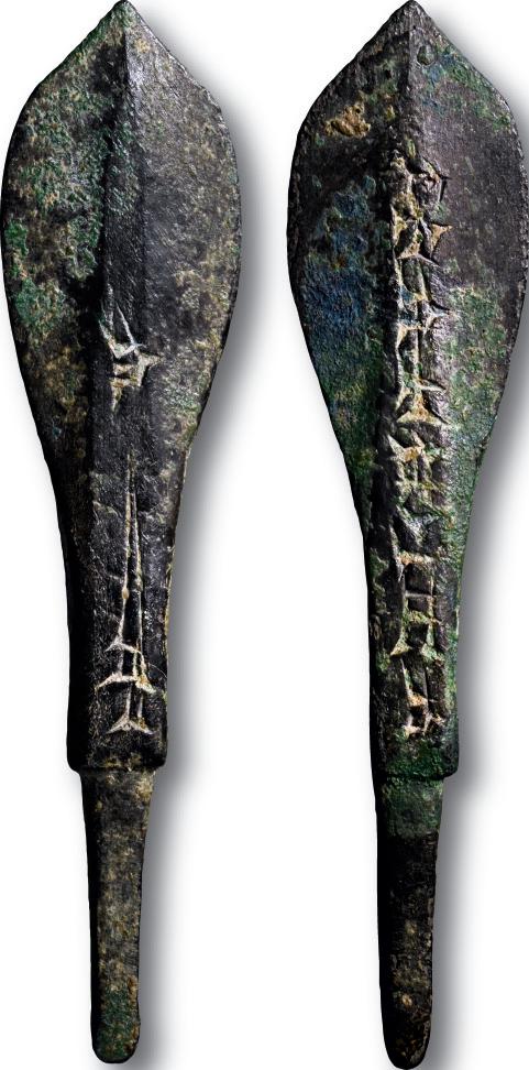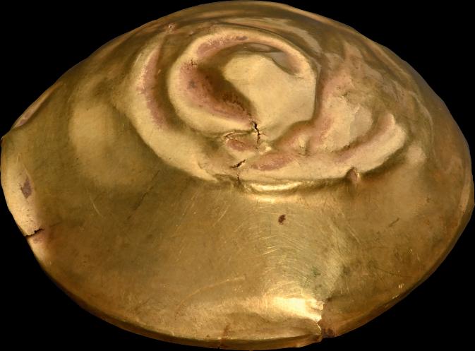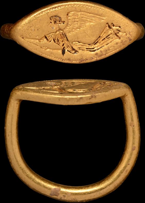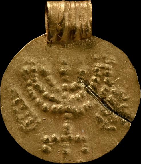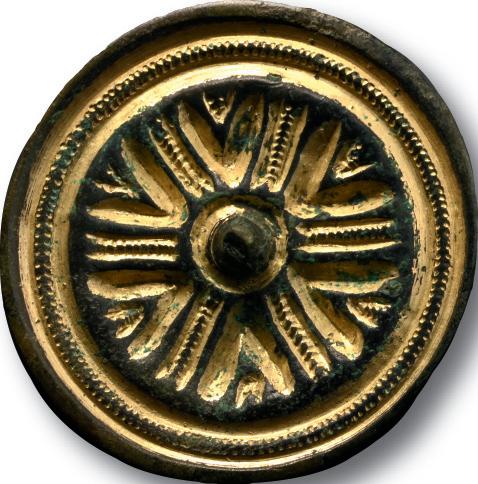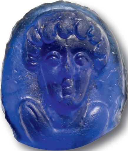 Plano-convex in section with incuse bust of Minerva wearing a Corinthian-style crested helmet.