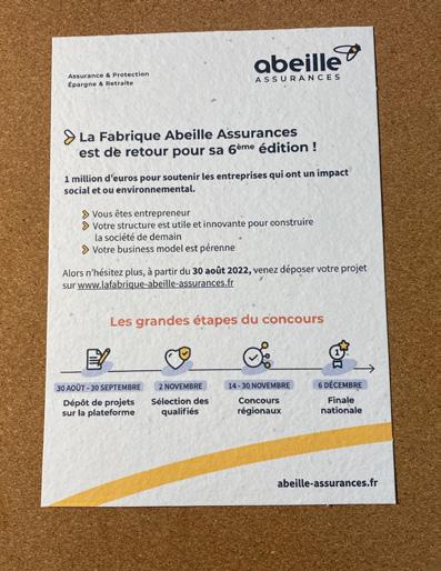 Abeille Assurance choisi une carte en papier ensemencé fabriquée dans le 11ème arrondissement de Paris dans un temps record ! Semer pour faire grandir les projets des valeurs communes qui nous rassemblent.