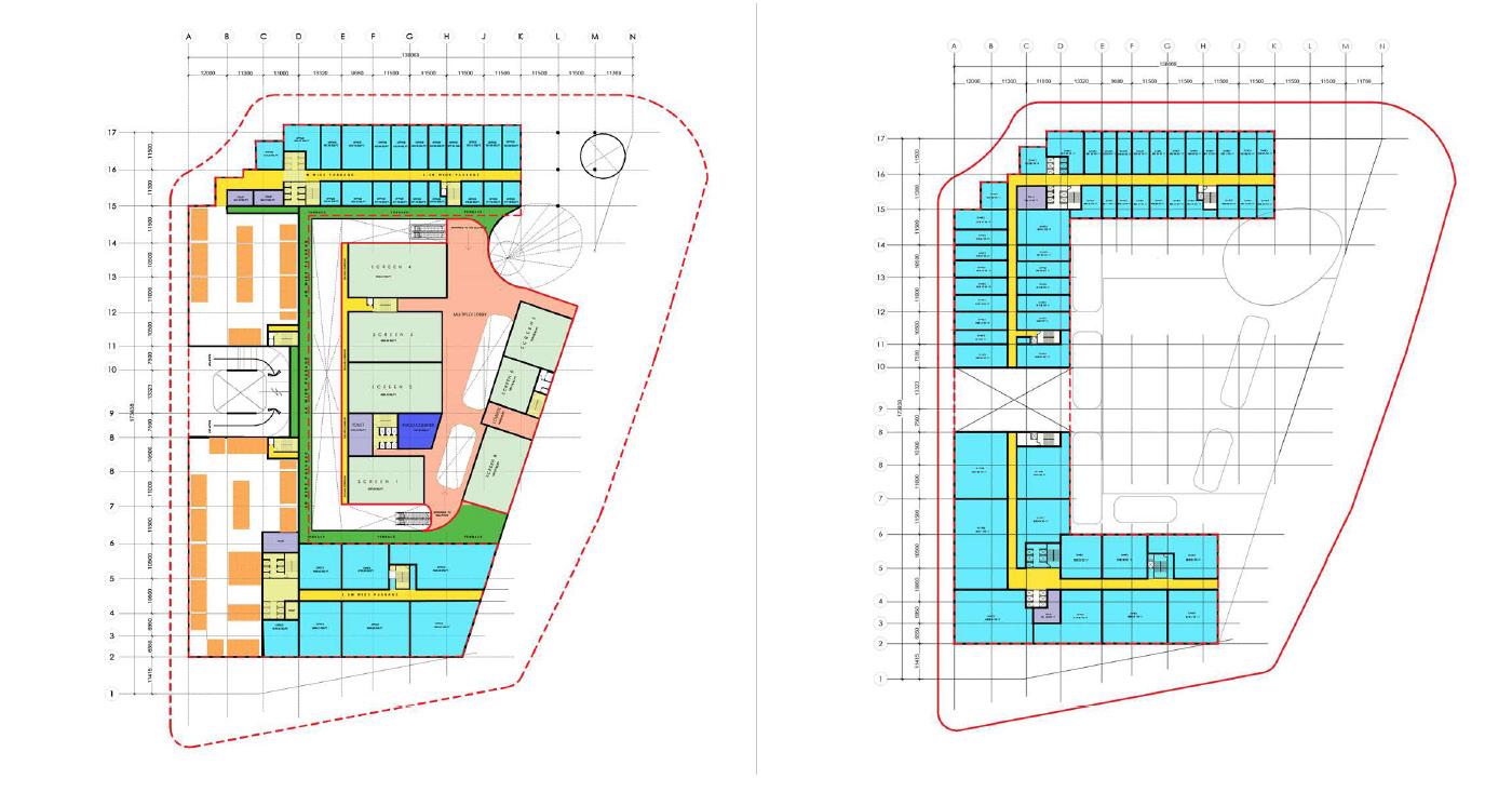 The side elevation is an open canvas for artistic to paint and express their art and emotions. The side facade is a combination of mesh facade gometry and art walls.The art gallery and experience centre cantilivers and expresses its presence in this tall mass fueled with layers and saturation.