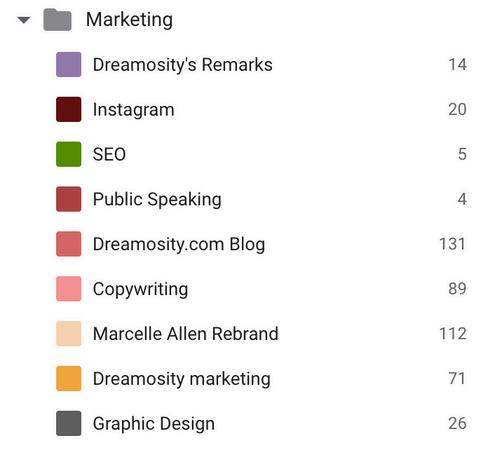 These are screenshots from my actual bonus brain. The number to the right of the projects (under Marketing) can totally overwhelm some people. However for me, it’s exciting! Think of it like a wine cellar for ideas and possibilities.
