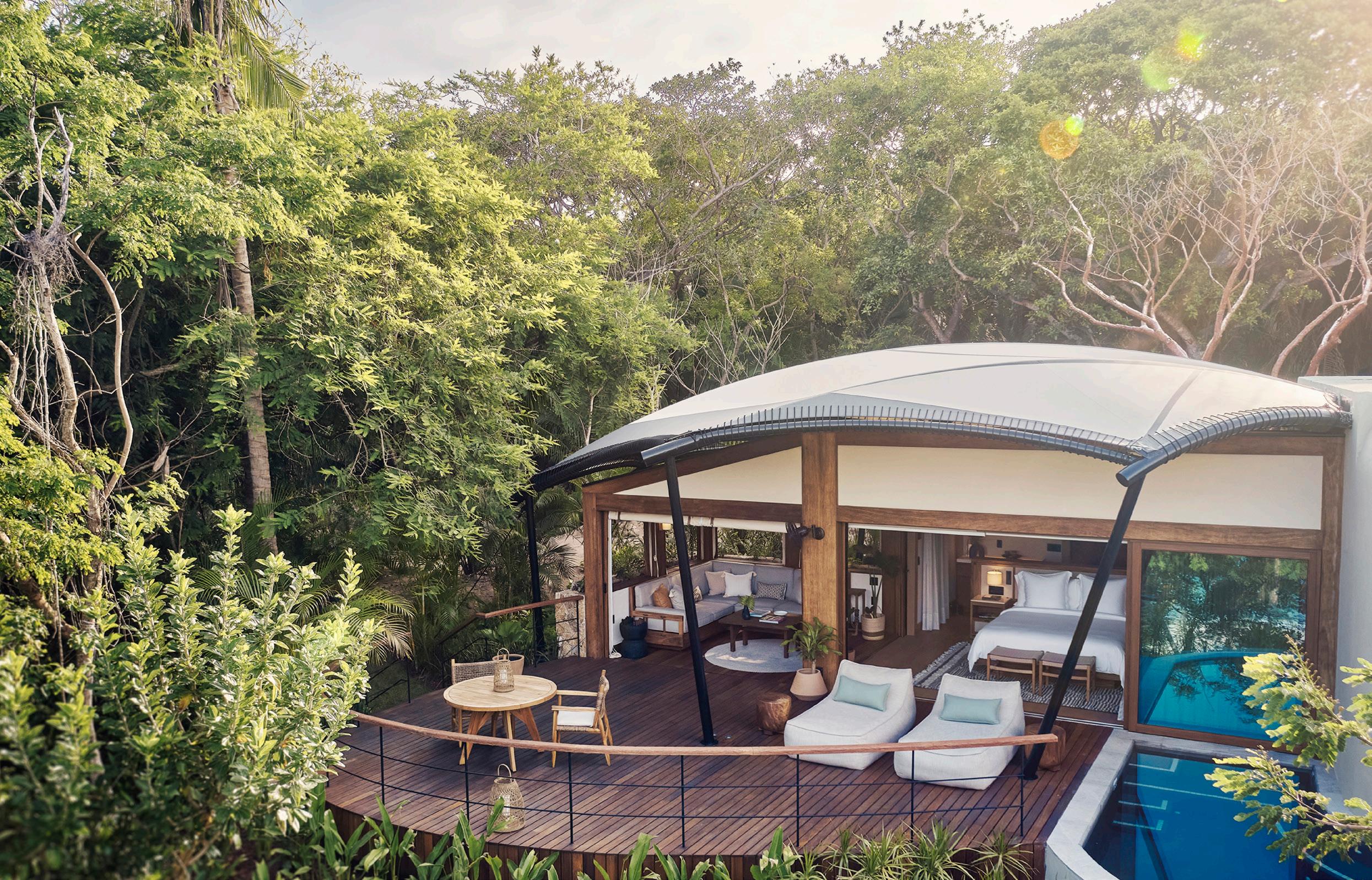 El pionero Four Seasons Resort Punta Mita ofrece una auténtica experiencia de lujo, con estilo y servicios derivados de las históricas tradiciones culturales mexicanas. Este complejo de primer nivel ofrece a los huéspedes instalaciones de última generación y todas las comodidades en un complejo de lujo. Este año, Four Seasons Resort Punta Mita nos sorprende con un innovador campamento resort de lujo en Punta Mita, rodeado de la exuberante belleza de la Riviera Nayarit. Este concepto surge de la idea de “naturaleza viva” o “vivir naturalmente”, integrándose cuidadosamente a su entorno natural, invitando a los huéspedes a conectarse con la tierra, el mar y lo más importante, consigo mismos.