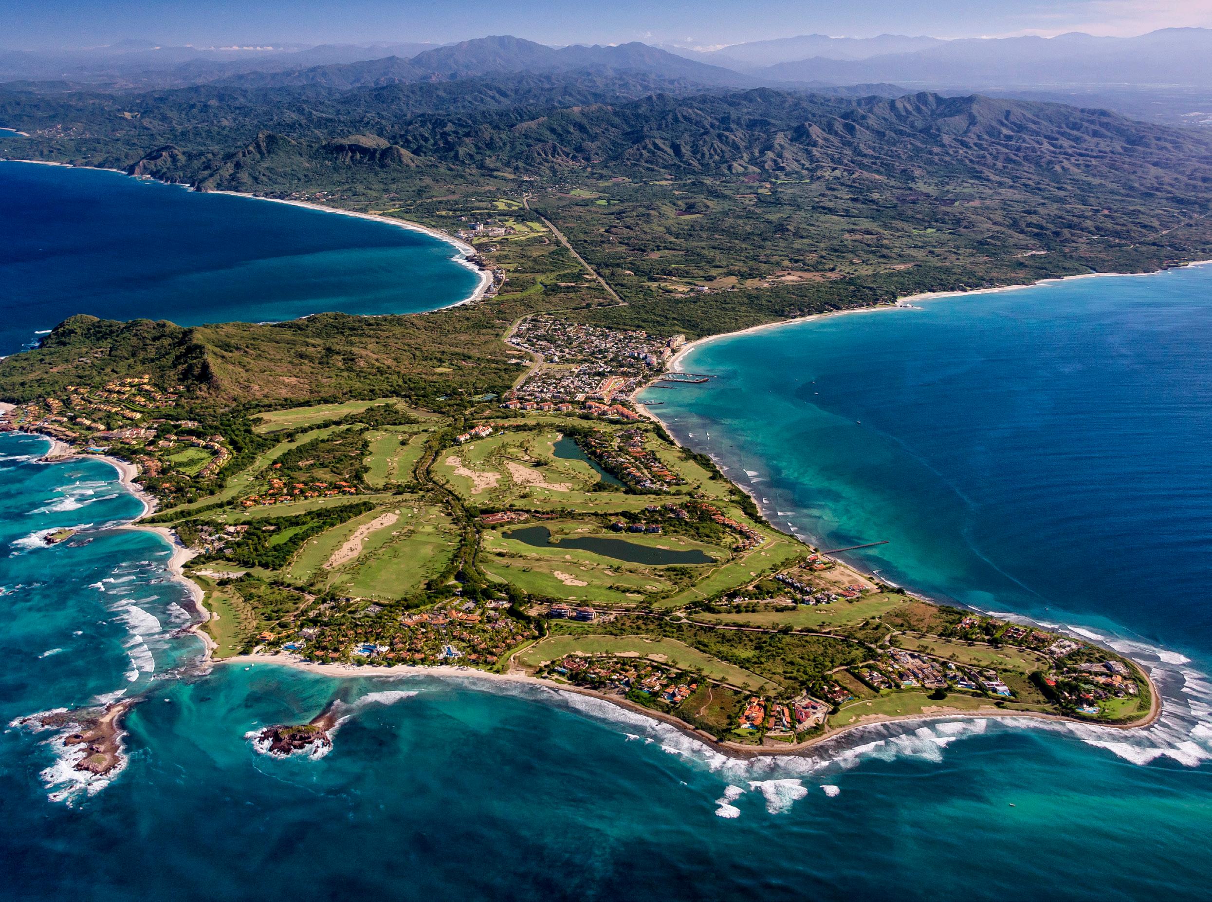 Punta Mita is an ultra-luxurious 1,500-acre resort and residential community. It lies on a private peninsula surrounded by white sand beaches, stately rocks, Pacific Ocean waters and lush tropical flora. Home to two 5-Diamond Rated Resorts; Four Seasons Resort Punta Mita and The St. Regis Punta Mita Resort, two Jack Nicklaus Signature golf courses, racquet club, water activities, restaurants, spas and a broad array of real estate opportunities. The community of Punta Mita is one of North America’s most sophisticated and exciting developments. Framed by lush tropical forest and the majestic Sierra Madre Mountains overlooking the Marietas Islands, where elusive blue-footed Booby birds fly, and divers thrill to underwater caves and kaleidoscopic coral reefs.