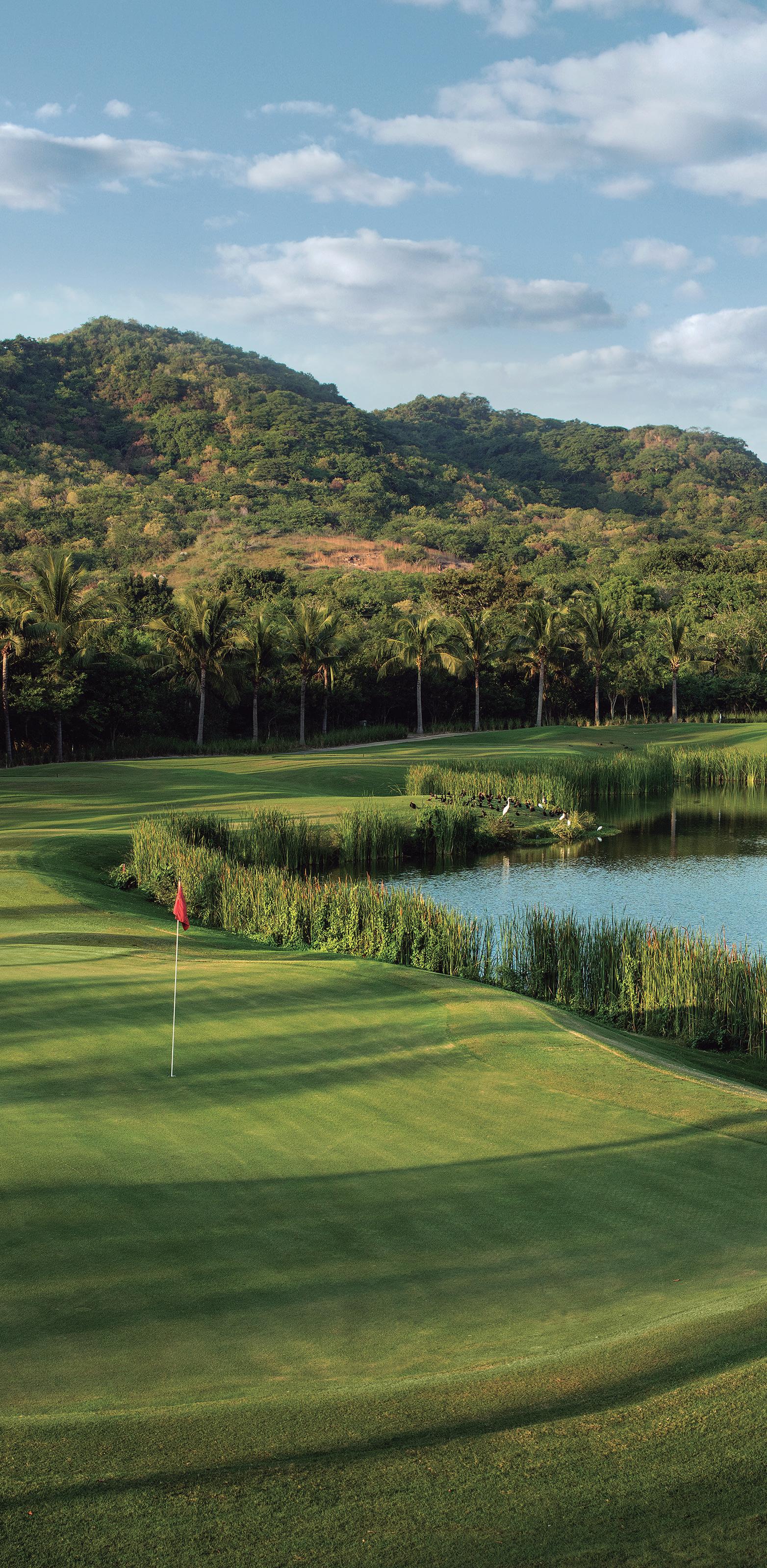 Altamente elogiado por golfistas y diversas revistas de golf, el campo está situado en medio de paisajes de playas de arena blanca y las montañas de la Sierra Madre. Distribuido en 81 hectáreas (200 acres), este campo aprovecha al máximo su ubicación junto al mar. Siete hoyos frente al Océano Pacífico o la Bahía de Banderas ofrecen avistamiento de ballenas durante la migración estacional. La “Cola de Ballena”, un par 3 opcional de 180 yardas situado en el Océano Pacífico y cuyo green es el único en el mundo en una isla natural.