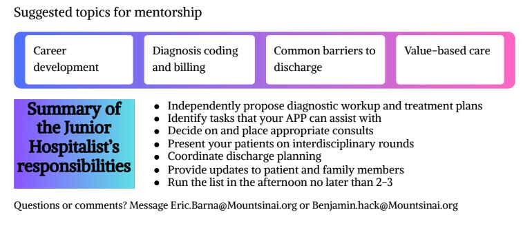 You now possess the essential tools to effectively support, advocate for, and guide your trainees as they embark on the next chapter of their careers as future hospitalists.
