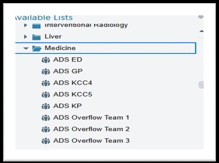 Check AMION to identify team folder (GP ADS, KCCC5-ADS, ED-ADS, KP-ADS).