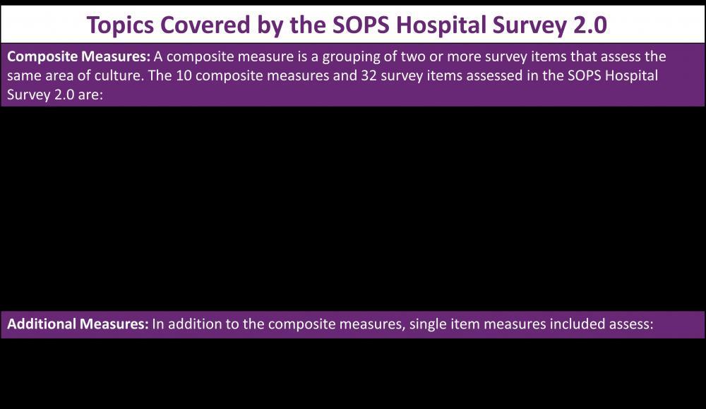 Source: “Hospital Survey on Patient Safety Culture.” AHRQ, https://www.ahrq.gov/sops/surveys/hospital/index.html.