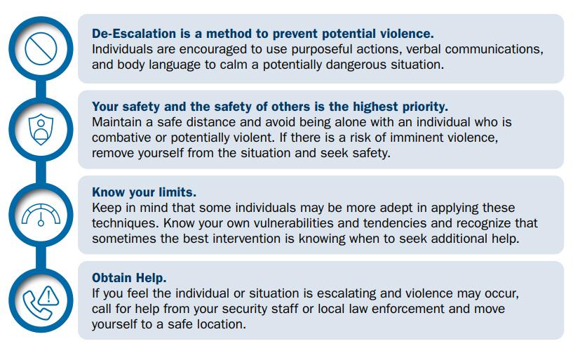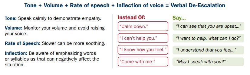 “The use of communication or other techniques during an encounter to stabilize, slow, or reduce the intensity of a potentially violent situation without using physical force, or with a reduction in force.”