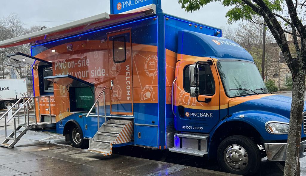 When pedestrians arrive, they may notice another new amenity at the stores each week: a mobile banking unit! Thanks to an exciting partnership with PNC Bank, the mobile bank branch began coming in March to offer a full suite of financial services to South Atlanta residents.