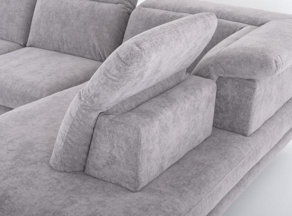 Komfort v podobe nastaviteľných opierok: dvoch chrbta, dvoch záhlavných a dvoch lakťových. Sedacia časť sa skladá z vlnovcovej pružiny a peny tuhosti T30120. Operadlová časť je vyplnená penou tuhostiT2315. Kostra sedačky je vyrobená z masívneho dreva. Súčasťou sedačky sú kovové nožičky čiernej farby. Možnosť výberu látok zo vzorkovníc CANVANI™ a SofaBasic™. Model na fotografiijevlátkeTerra73.