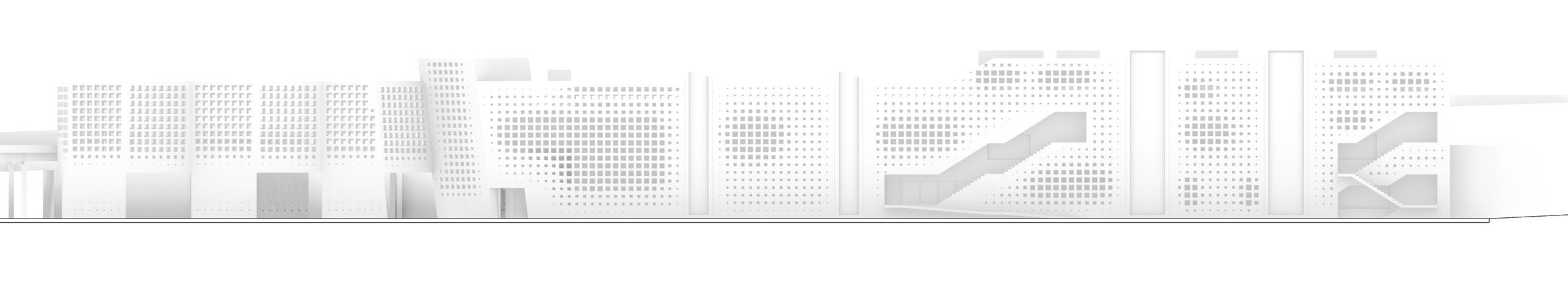 In times of dispute, clearing the mind can be achieved by removing oneself from the combative environment to a more peaceful area. Polarized is an arbitration office located in Harlem. Using large perforated screens, light wells, and long walks, it removes disputing parties from the surrounding city. The parametrically-generated facade screens out the harsh urban streets and railroad, while bringing in daylight and views of the sky and the viaduct trees. Within these screens, people have the space to separate themselves from whom the dispute in the waiting area, but opportunities to engage them in the cafe lounge.