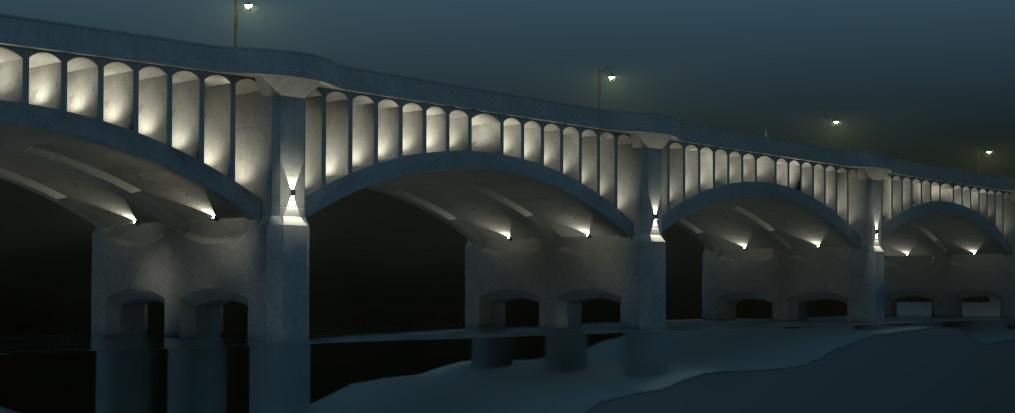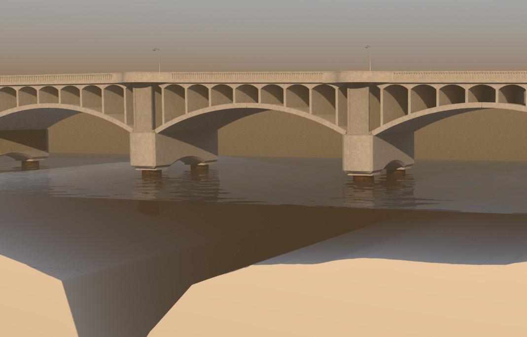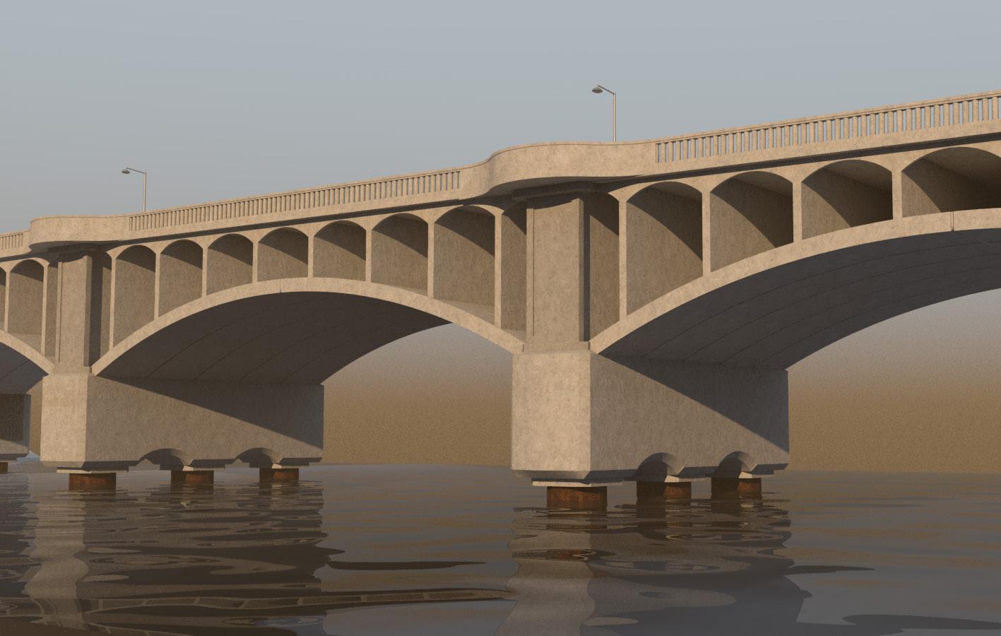 This bridge concept was produced to visualize a multitude of options for a vehicle and pedestrian crossing. All details are fully parametric to streamline creating variations of both major and minor elements.