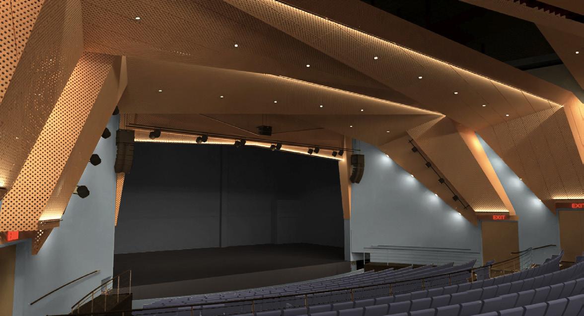 The renovation of a community college theater. These renders and details were part of a lighting study to pitch a new house lighting scheme, as well as attachments for AV stage lighting.