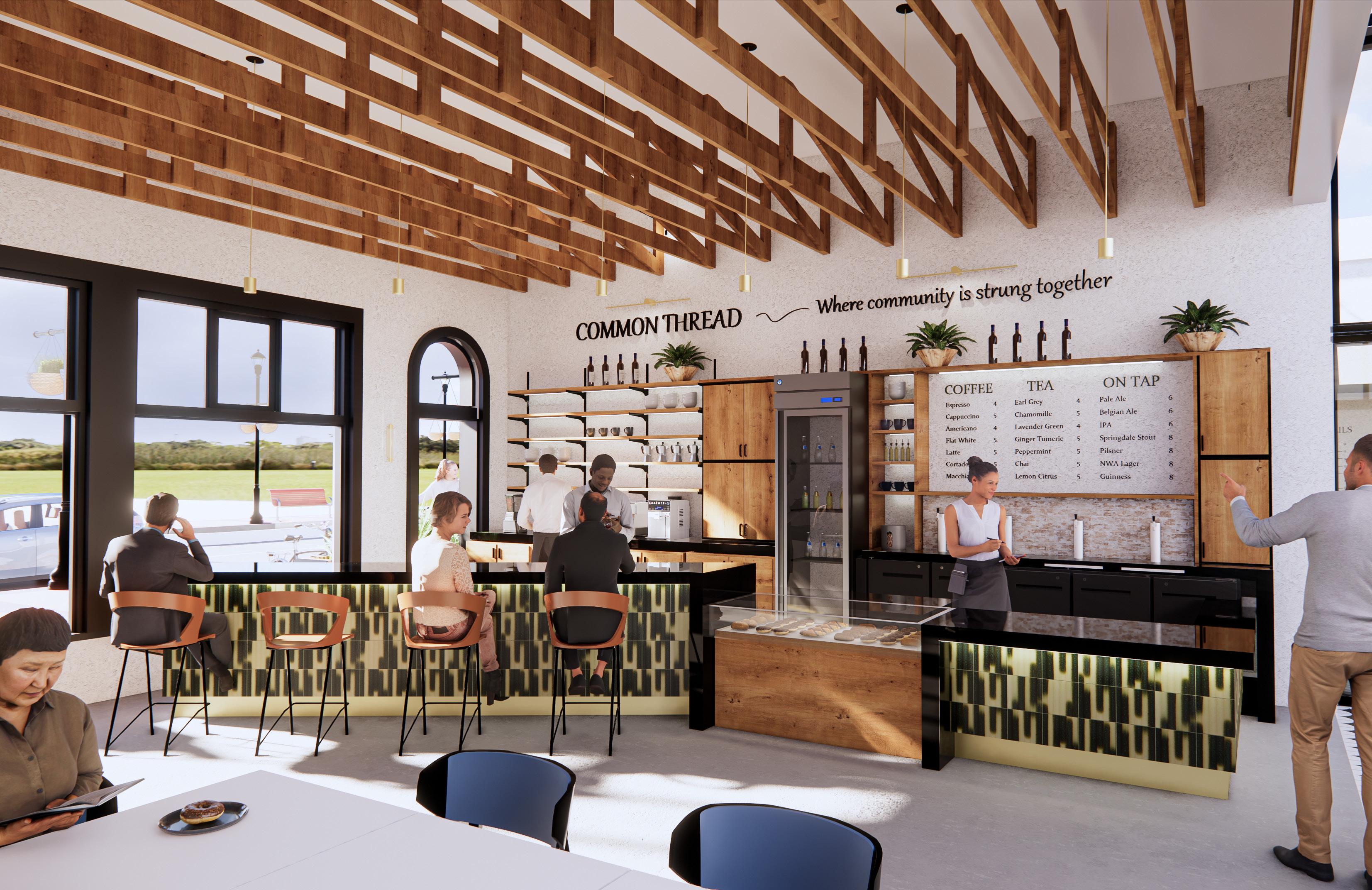It seeks to bring together a diverse market of coffee, wine, and music lovers in an effort to provide a ‘common’ space outside of home and work/school. Common Thread’s motto is “Where community is strung together” which promotes the collaboration of minimalist aesthetic with bold design decisions to holistically merge the sounds and sips of Springdale’s community.