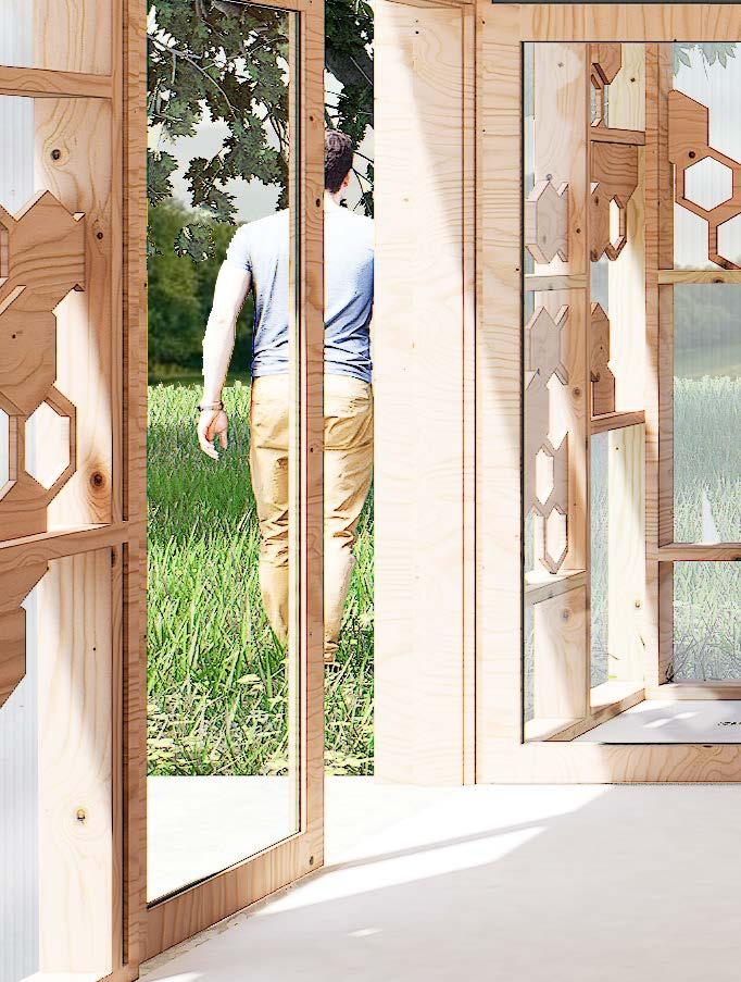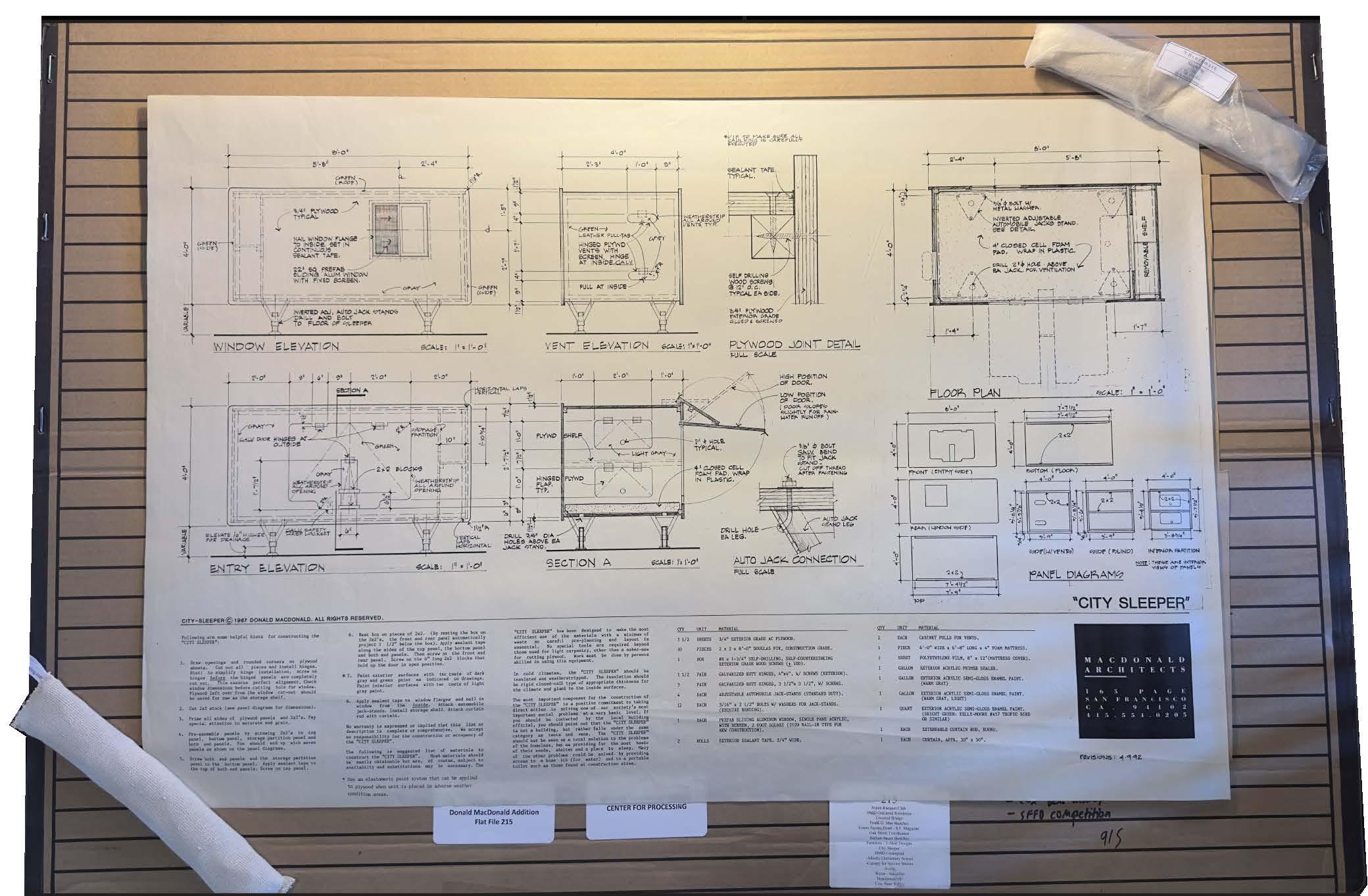 Designed by Donald MacDonald as a proposal for affordable housing for San Francisco’s homeless population in the 1970s, this project was reconstructed using detailed original plans provided from his personal archives. CNC technology allowed us to fabricate the structure efficiently from 5/8” plywood, highlighting the simplicity and practicality of MacDonald’s innovative design.