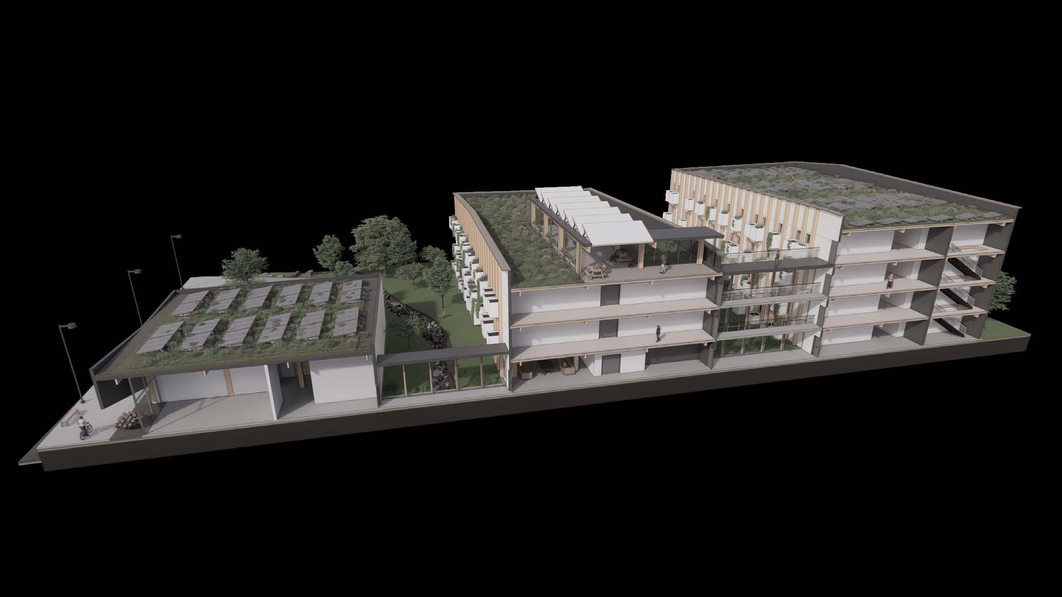 The design of Verde focuses on creating a safe and nurturing environment that feels like home for its occupants. To achieve this, Verde reimagines urban living by introducing a green oasis in the heart of Dallas. By minimizing the building’s footprint and strategically orienting the structures to maximize natural sunlight, the project dedicates 70% of the site to greenery. Communal gardens and personal planters are integrated into each residential unit, empowering residents to grow their own produce and fostering a sense of connection to nature through accessibility. Through thoughtful design, Verde combines sustainability with community well-being, offering a sanctuary where