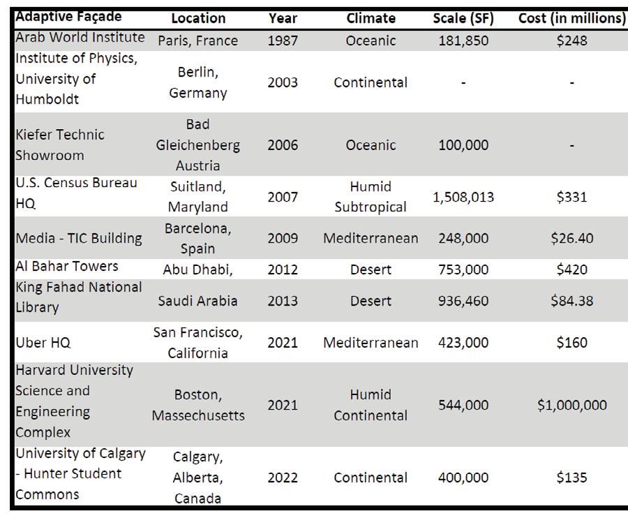 However, even though adaptive facades have great potential to reduce building energy consumption and improve the user’s comfort, they are still not a widely used practice (Borschewski, David, et al 2023). The established benefits and incentives are more appealing to those who have little involvement in the design process. Through their research, Borschewski and others have found that stakeholders with significant decision-making power have additional motivators in addition to the well-known benefits and drawbacks of adaptive facades. Their research highlights a case study of an adaptive facade with an integrated ventilation system which was installed in place of the conventional centralized ventilation system. The performance was compared to a building with centralized ventilation as it usually operates. Since the central duct system may be removed, this lowers the building height and, consequently, the construction’s weight. Up to 680,000 pounds of material and almost 10 feet of building height can be saved, resulting in an averted 220,000 pounds of CO2 which is equivalent to a − 7% impact on climate change. With this, it is possible to prevent 1,230,000 pounds of CO2 during use. Rentable floor space can also be increased by 4%, while the lifecycle expenses can be lowered by 512,436 dollars (Borschewski, David, et al 2023).