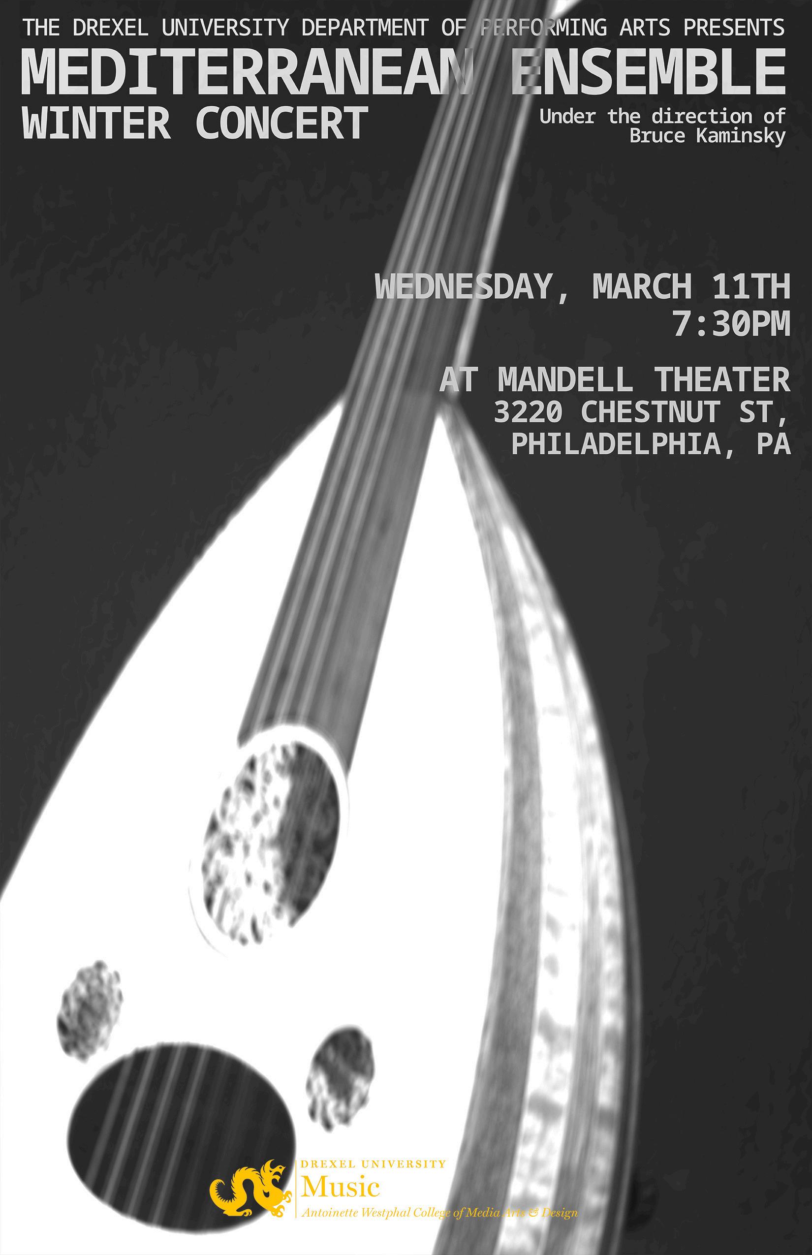 The Drexel University Mediterranean Ensemble (MUSC 114) is open to any student with an interest in performing music from Southern Europe, the Middle East, and Northern Africa. No previous experience in this music is necessary. All are welcomed in the Ensemble.