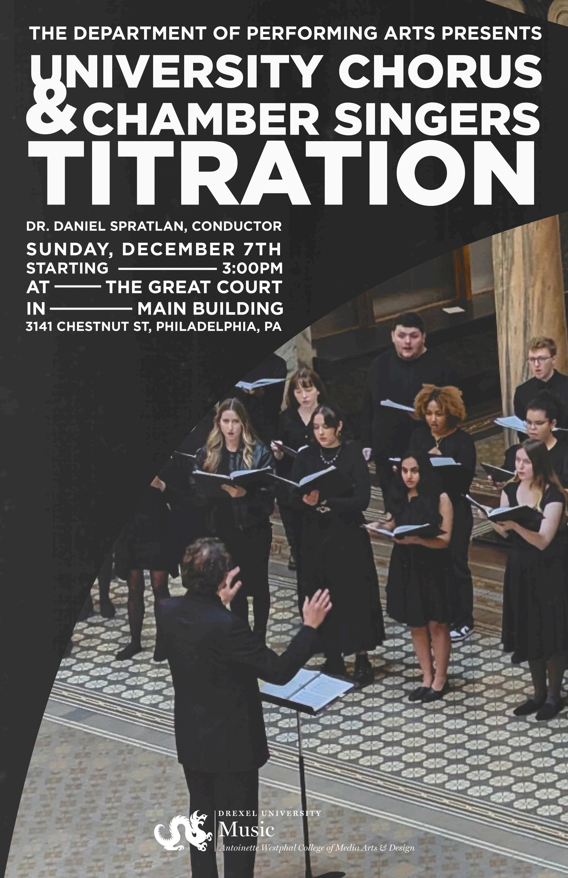 The Drexel University Chorus and Chamber Singers would like to thank everyone in the Performing Arts office, especially our fearless leaders Luke Abruzzo, & Dr. Miriam Giguere.