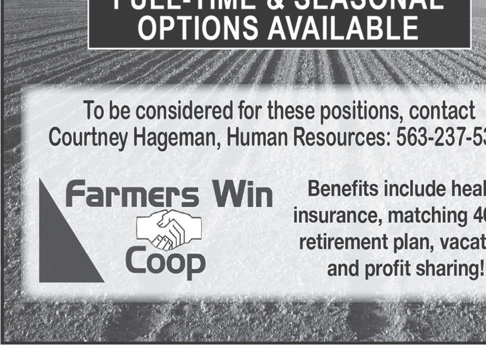 EEO - Pre-Employment Drug Test and Post-Offer Physical Stop by to fill out an application or mail resumes to: Apply at: lynchfamilycompanies.com/careers or by calling 563-776-3051